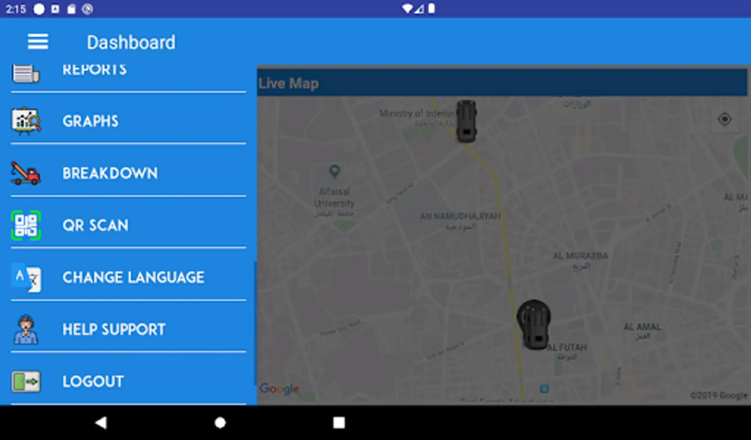 لوحة قيادة رقمية تساعد على تتبع الحافلات على الخرائط تتبع مباشر ، وكذلك الحصول على التنبيهات المباشرة في حال تجاوز السرعة المحددة.