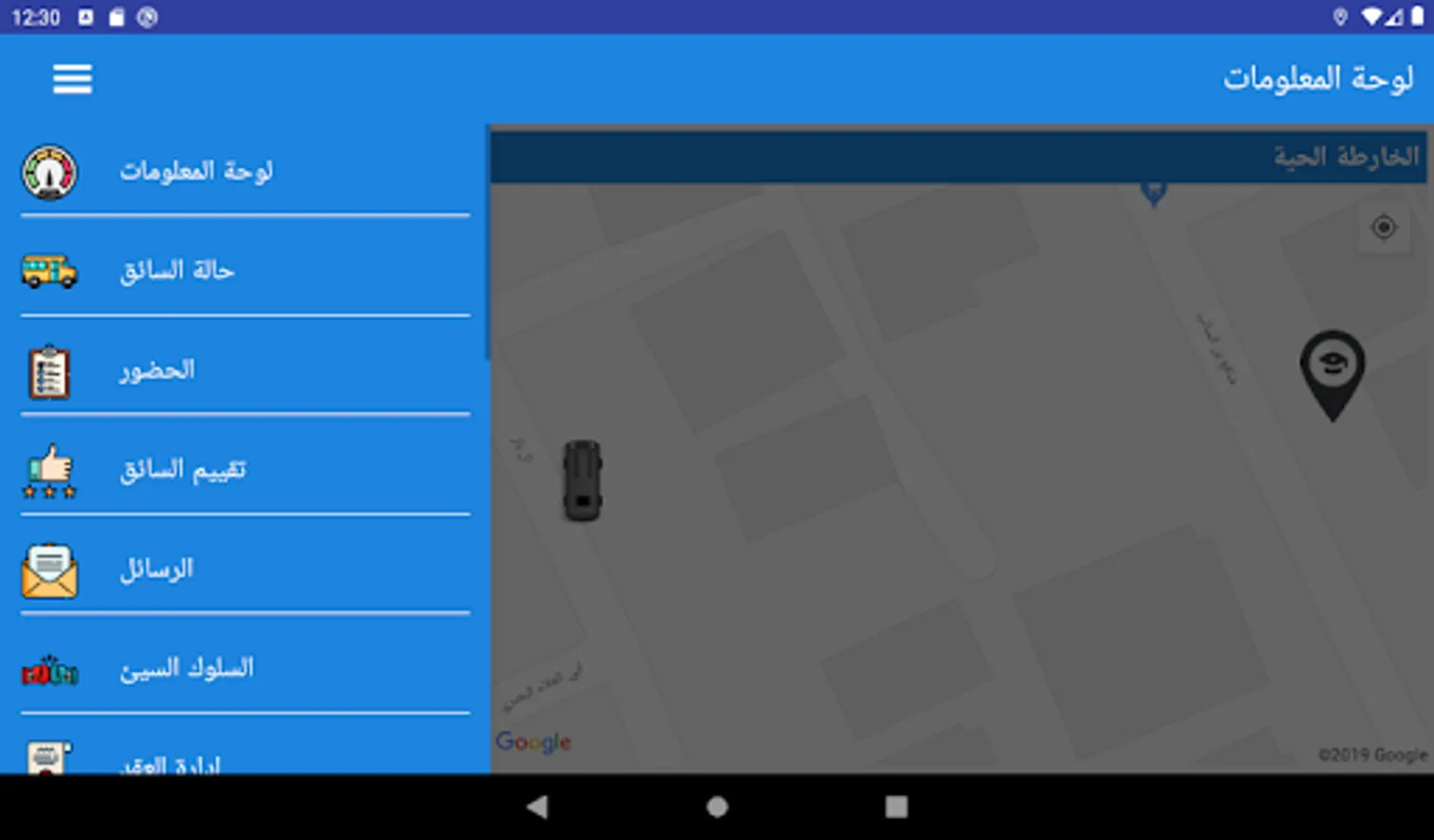 لوحة قيادة رقمية تساعد على تتبع الحافلات على الخرائط تتبع مباشر ، وكذلك الحصول على التنبيهات المباشرة في حال تجاوز السرعة المحددة.