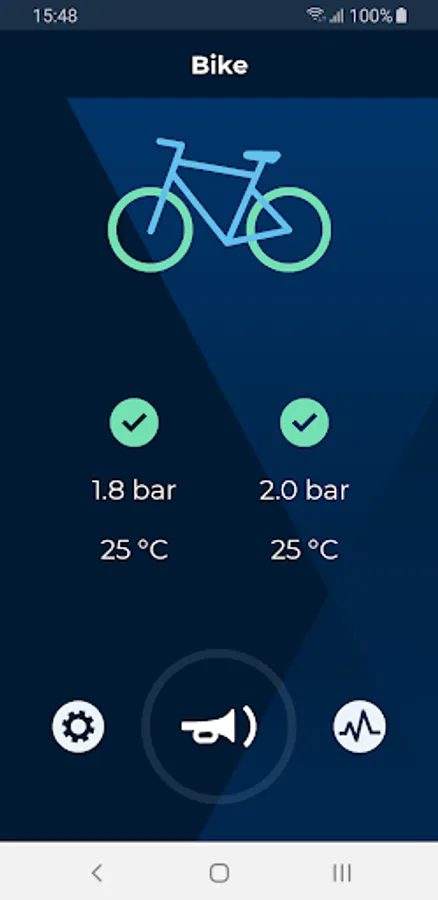 AIRsistant - ride safe, ride better. Thanks to the AIRsistant app you will be able to monitor the air pressure and temperature of the bicycle tyres and see real-time pressure readings. The tyre pressure is displayed after sensor activation as soon as the ride begins and can be easily adjusted using the digital pressure gauge function of the mobile application. If the actual pressure deviates from the optimal pressure, the biker is warned using audio and visual alerts on the phone.