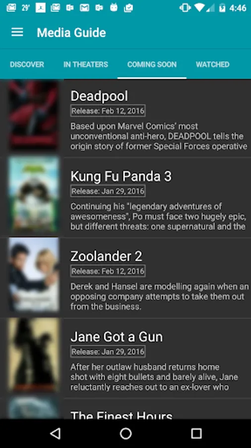 Media Guide hooks into Trakt.tv so you can keep track of all the latest movies and TV shows. Media Guide helps you find movie and T.V. streams on services like HULU and NBC.