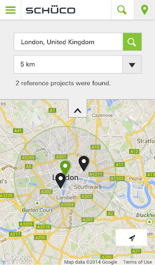 Map view with Schüco reference projects in your vicinity.
