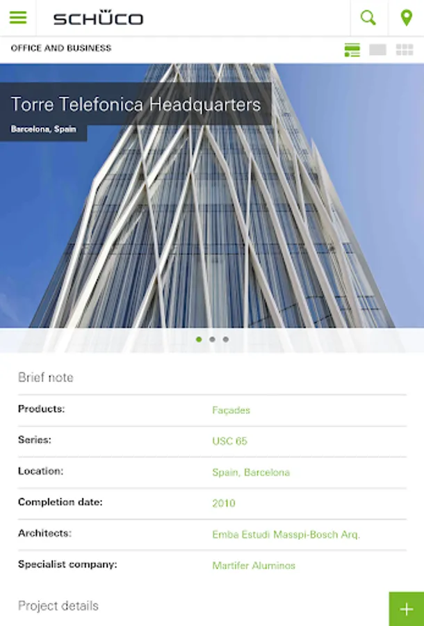 The Schüco reference project App shows you where Schüco products have been used via the map feature or push notifications. A simple way to find out what Schüco is contributing to building solutions.