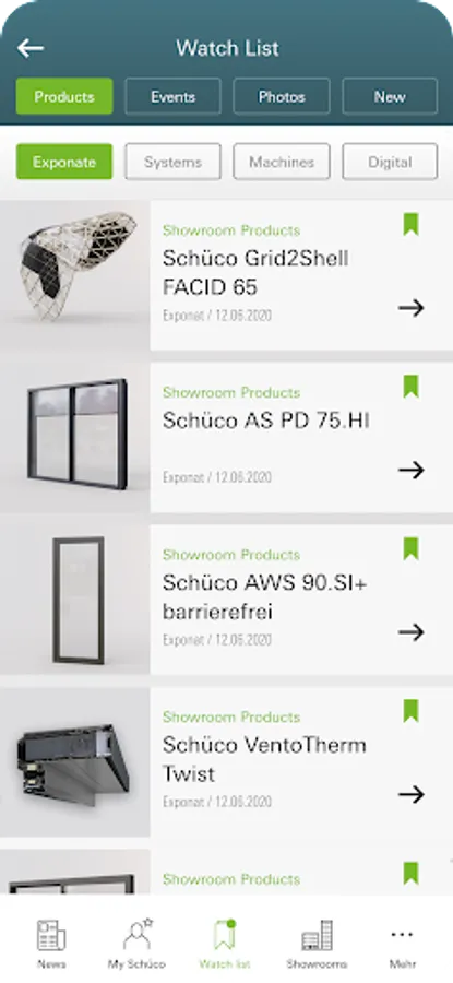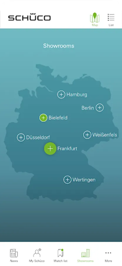 And even when you're not on Campus, you can still use the app to receive information on upcoming events and make use of other features. In your personal My Schüco area, you can create a Favourites list for storing helpful information on products, machines and exhibits.