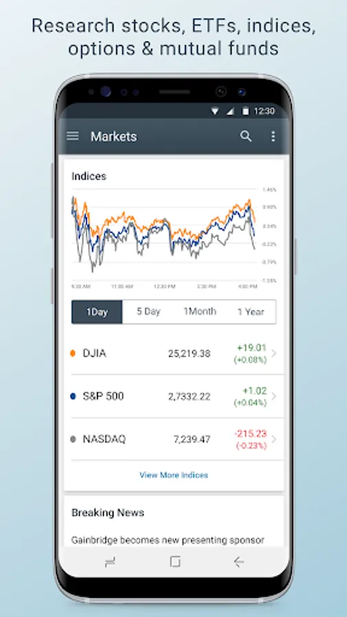 Buy and sell stocks, ETFs, mutual funds, options (1), and more right from your phone (2).