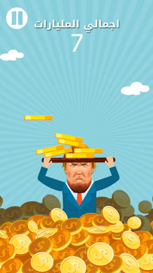 قم بالضغط على الشاشة يمين ويسار لتحريك ترامب وجمع المليارات