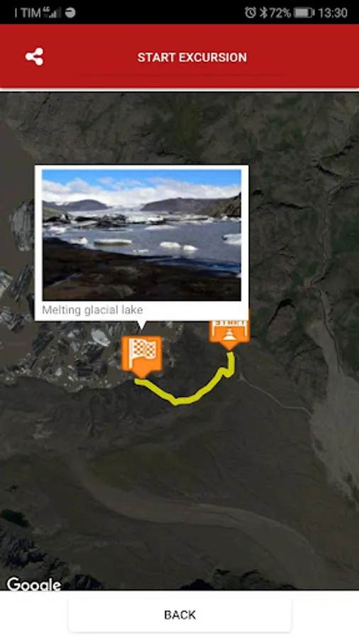 Our app gives road indications to reach the starting point of the different paths (when possible, as in some cases the start is not reachable by car).