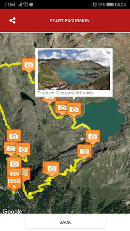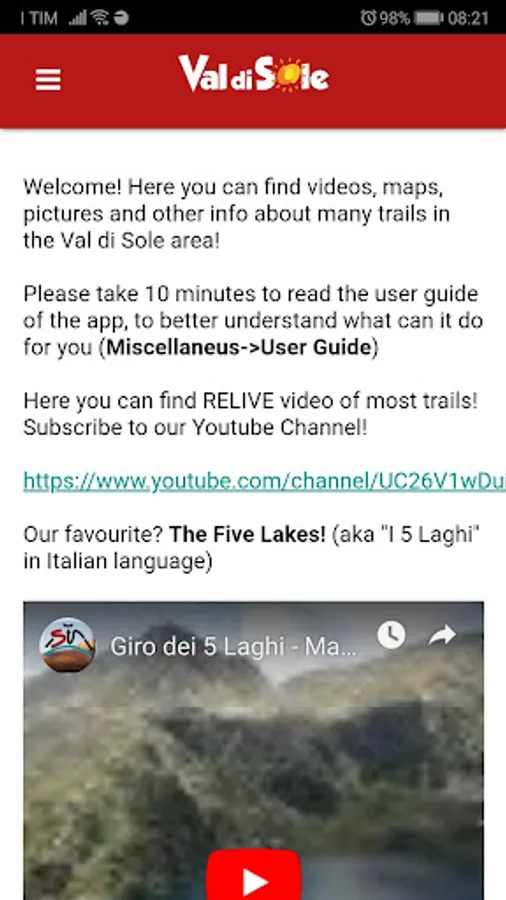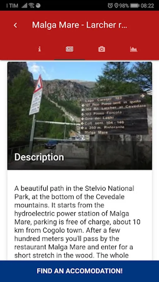 Our app gives road indications to reach the starting point of the different paths (when possible, as in some cases the start is not reachable by car) and it allows to see your position on the map in relation to the path we propose.