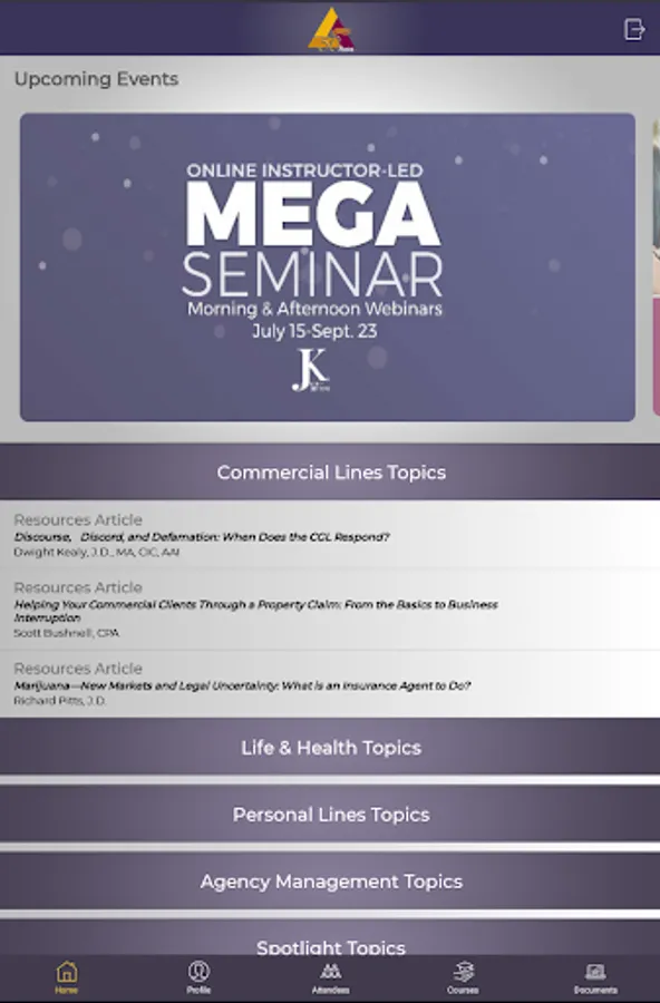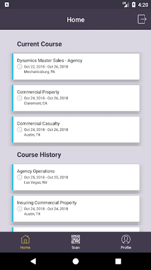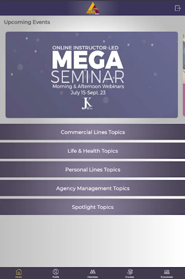 1. Register for courses through Home screen.