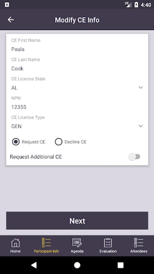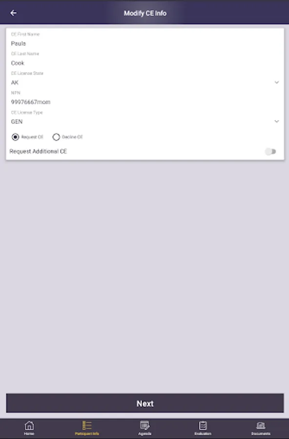 4. Request or Decline CE information.