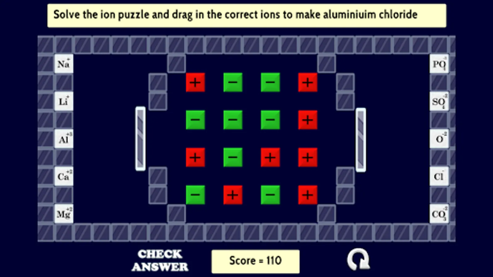 The game also demonstrates how ionic compounds are formed by combination of cations and anions so that electrical neutrality is maintained.