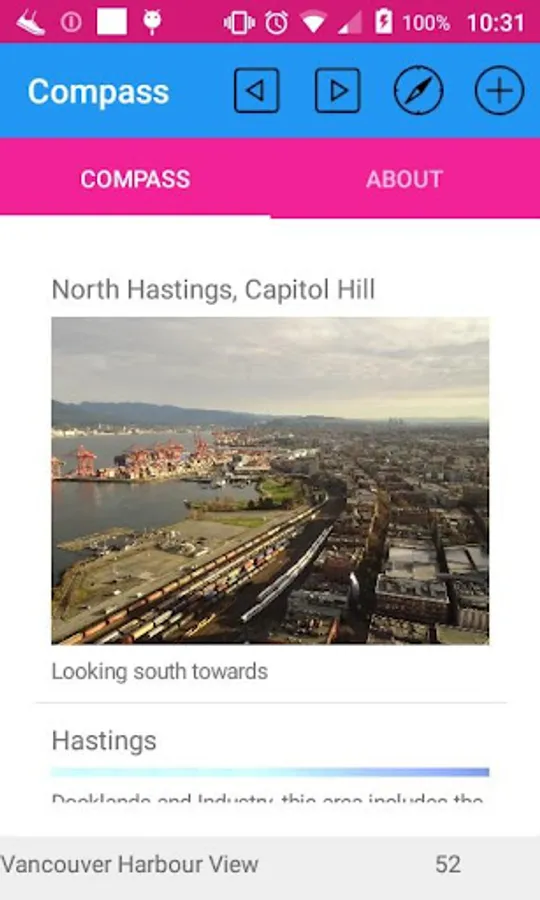 This Application enables you to 'see' points of interest in the direction you are pointing your device (compass). The information you will receive will be dependent on the are you are in and on the data managers. This starts in Vancouver BC, but in time will include other cities.