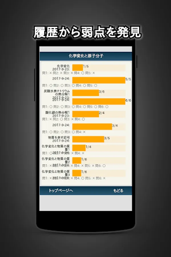 Also, in the history, ○ × and points of each problem are recorded, so it is useful for finding weak points and weak points.