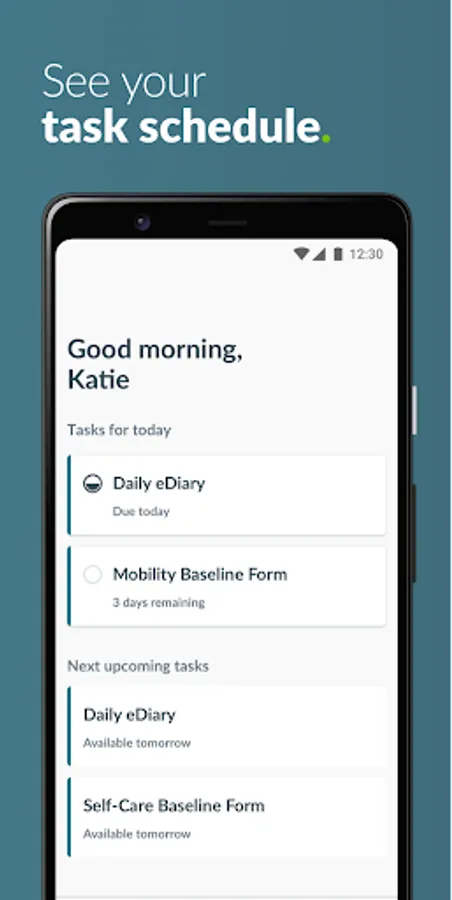 - Track your progress throughout your time in the trial. See what assessments you’ve completed and review all of your important trial documents.