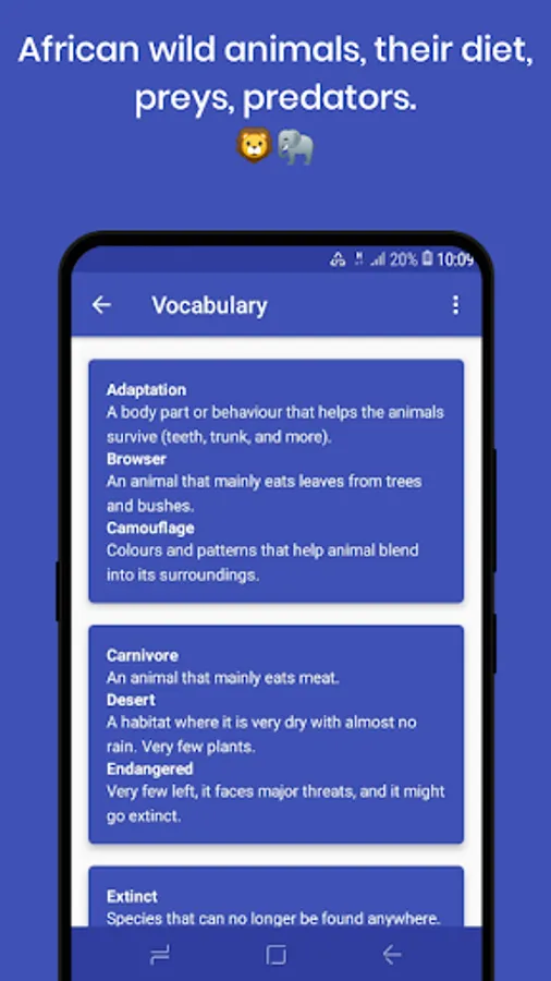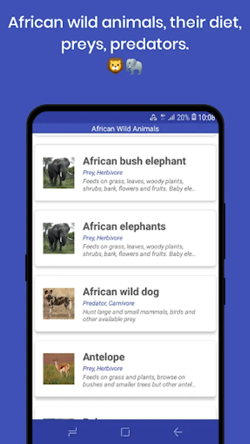 The study of African wild animals' life; their behaviors in their habitats and their foods.