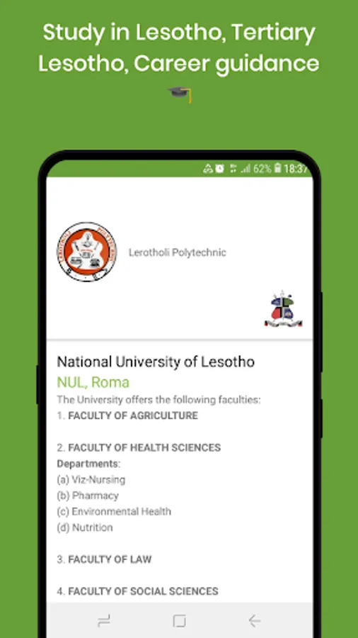 Learn all Lesotho tertiary institutes and study in Lesotho; learn about the list of tertiary schools in Lesotho. Have a good career guidance for your best career of choice.