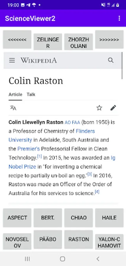 Application for viewing information about modern scientists, i. e.:
