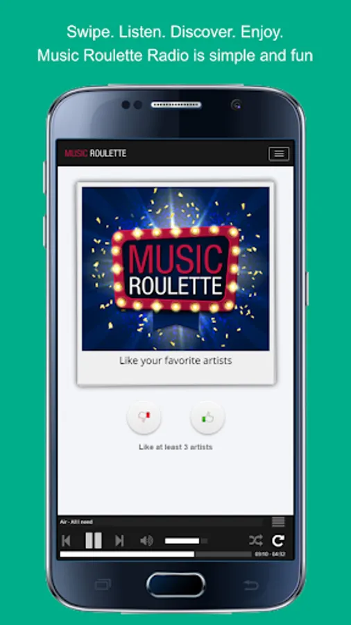 Swipe. Listen. Discover. Enjoy. Music Roulette Radio is simple and fun: a swipe to the right to select the artist and a swipe to the left to reject them.