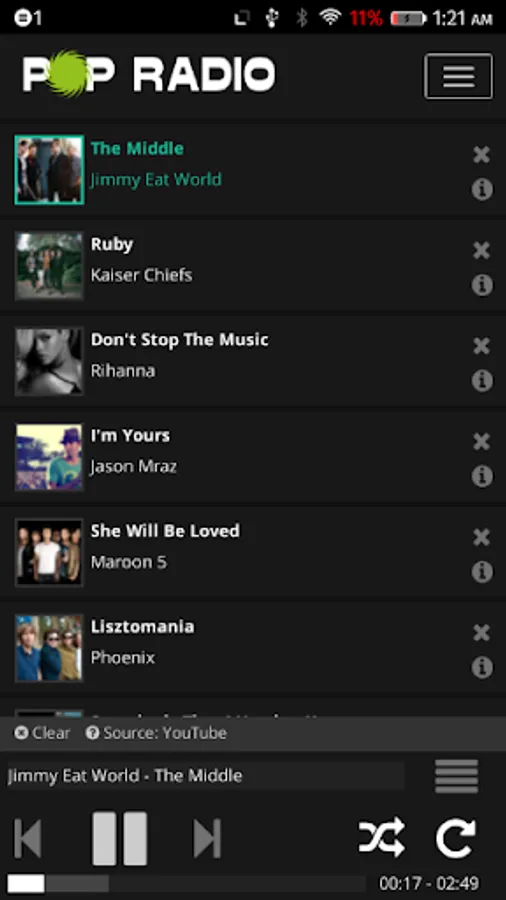 More information about titles and artists is shown while your music is playing. Furthermore, you can see the entire playlist, directly select individual songs and jump forward and backward in the list. If you have a particularly liking for an artist that was just played, you can compile an individual artist radio with just one click.