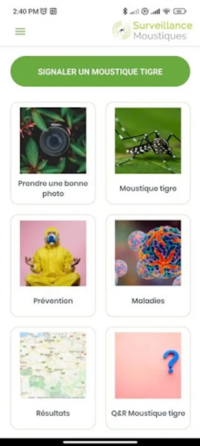The SurveillanceMoustiques application, based on the website www.surveillancemoustiques.be, was developed to monitor the tiger mosquito (Aedes albopictus) and other exotic mosquitoes in Belgium. Citizens can report the presence of the tiger mosquito by sending photos through this application. The app also provides information on diseases transmitted by mosquitoes and preventive measures against their bites.