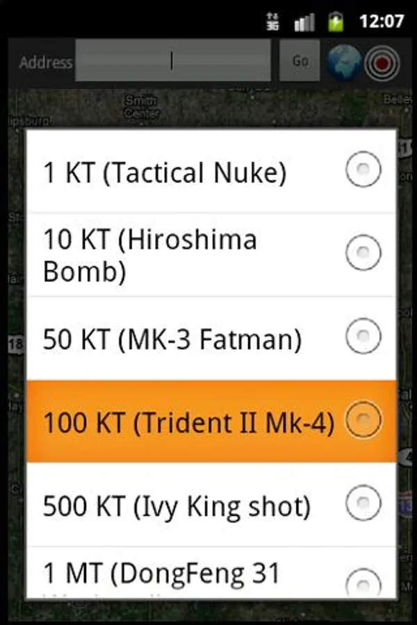 The Simulator section of the app allows you to pick any spot on earth and detonate a number of historically accurate nuclear weapons, providing details of the detonation such as Blast Radius, Radiation Levels, and estimated fatality rates.