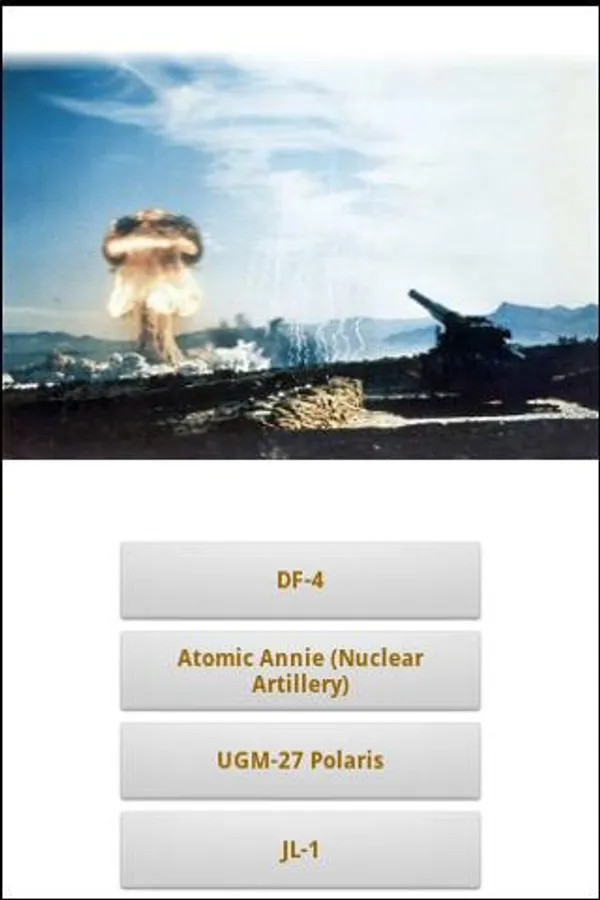 Nuclear Warfare! is an all-in-one App containing a Nuclear Weapon Blast Simulator, Comprehensive military encyclopedia, and Nuke Weapons recognition game focused on the evolving Nuclear Warfare concepts of the post-World War II period. If you want to distinguish a DF-31 ICBM from a Trident II SLBM, Nuclear Warfare! supplies you with the information that Nuclear Weapons enthusiasts need to know.