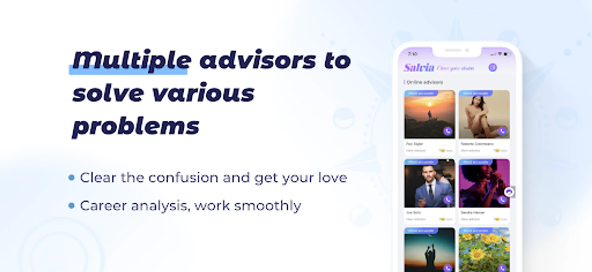100% Privacy: Salvia not only offers the opportunity to ask anonymously, but also the opportunity to make private calls with advisors, your privacy is fully protected here.