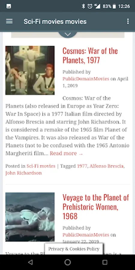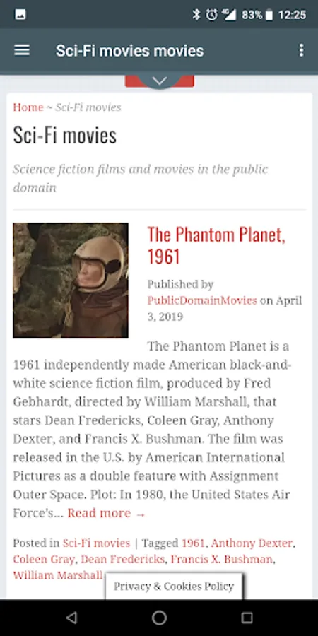 The best science fiction movies you can find in the public domain. A collection of some of the best Science Fiction films and movies in the public domain. Robots, Space Ships, Martians, Aliens and the best films