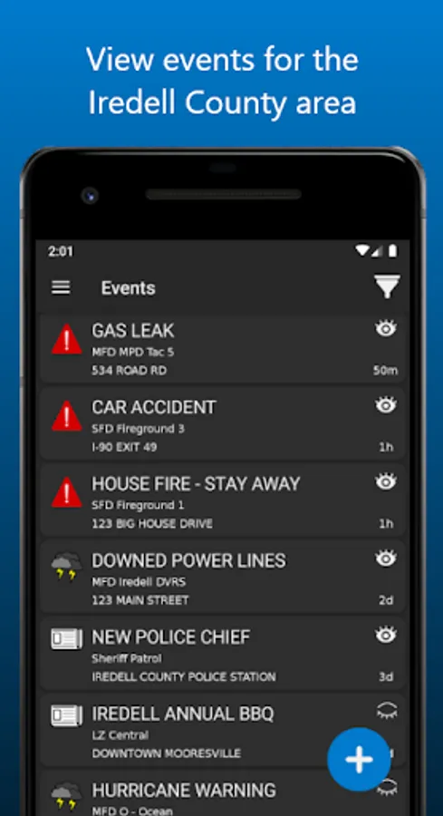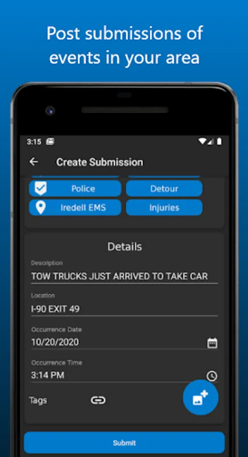 Iredell Firewire360 is an event tracking and monitoring app for the Iredell County area. App users submit information, including images, videos, and documents, related to incidents, weather, and general news. Submissions approved by administrators become shared events and event details, making them visible to all app users.