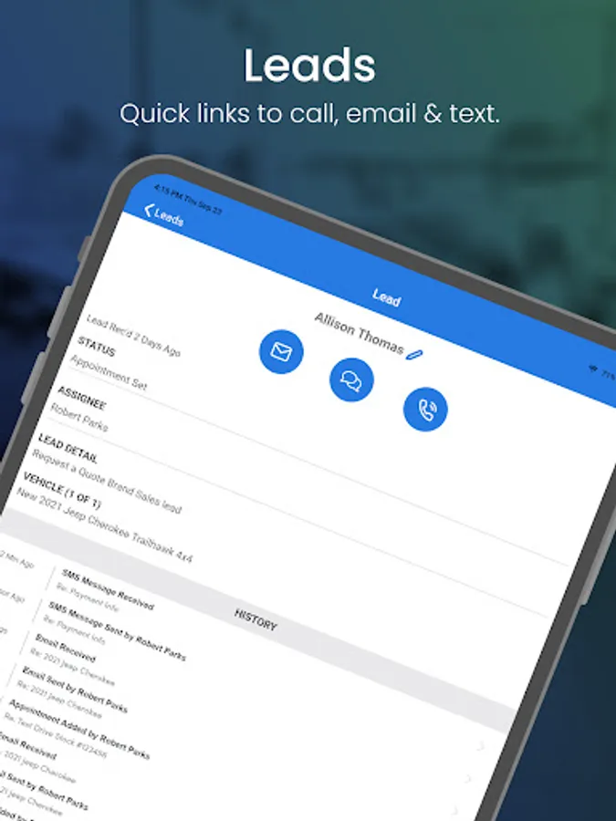 Manage internet leads, phone ups and showroom traffic all from the palm of your hand.
