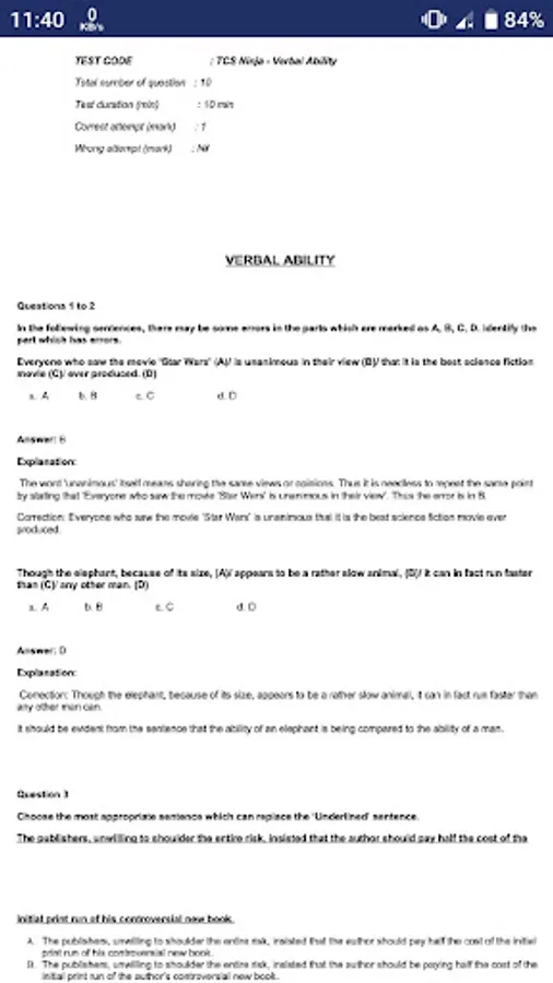 **TCS Ninja Verbal**