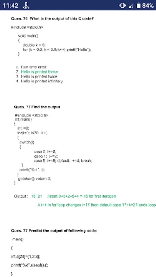 TCS Ninja programming MCQ’s cover basic topics in C. There are lot of mcq's and Conceptual Questions in programming in the application. It is easy to answer these questions if you are conceptually strong in C programming.
