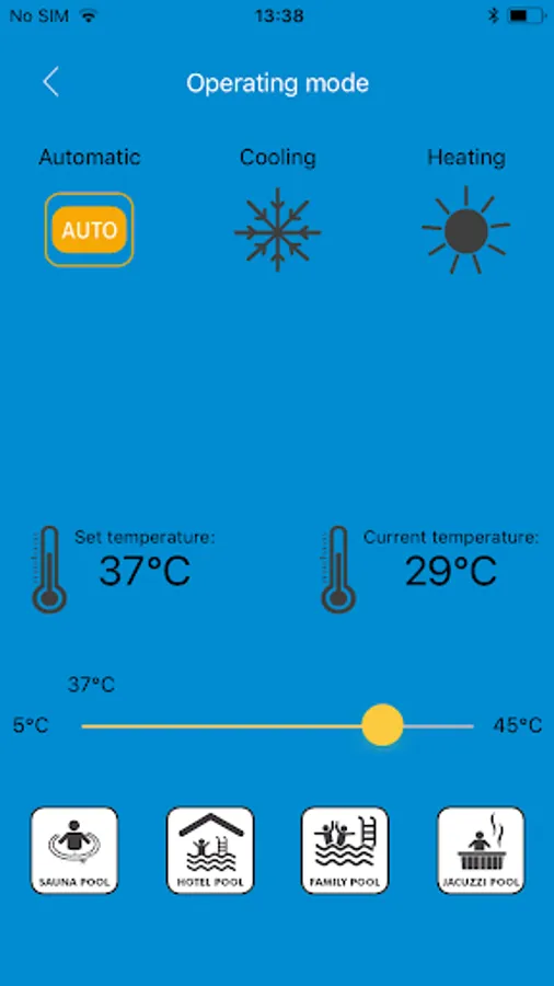 -         Overview of current temperature of your pool water