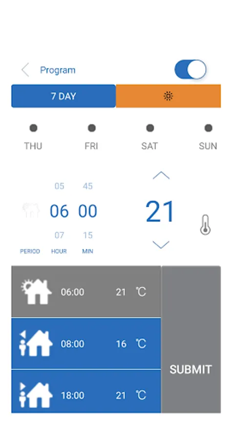 Functions include; Set temperature adjustment, instant temperature monitoring, historical monitoring and schedule programming.