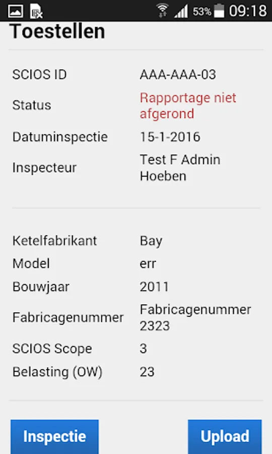 With this tool, by a certified inspector, joined an inspection company approved by SCIOS, the annual maintenance report for Scope 1 & 2 format installations. After authentication, the system data based SCIOS ID are read. For this an Internet connection is required. The report itself can be completely offline (including in a boiler room where there is no Internet connection). The report will be sent automatically when an Internet connection is established again. The report consists of 2 x A4 (PDF) per unit. The data of the inspection operation and the inspector itself can be automatically adopted. The measurement equipment has to be entered once and is remembered.