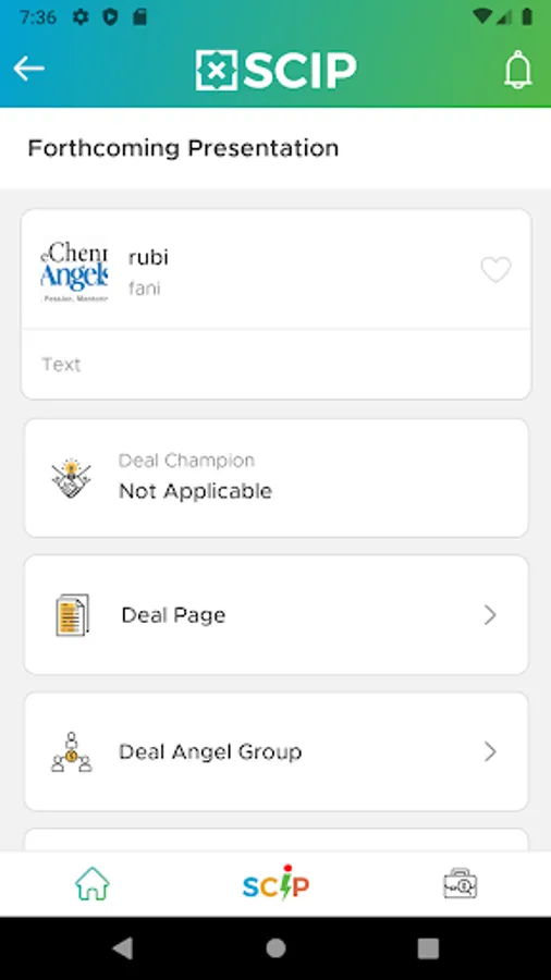 SCIP mobile App for Angels is used to manage the entire investment lifecycle from identification, selection, investment, and post-investment tracking. SCIP mobile App for incubation is used to manage the entire incubation lifecycle from selection to incubation to graduation. Entrepreneurs use their SCIP App for engaging with the incubation and angel network team. SCIP App provides access to unified information to Angels and entrepreneurs across the entire investment and incubation lifecycle.