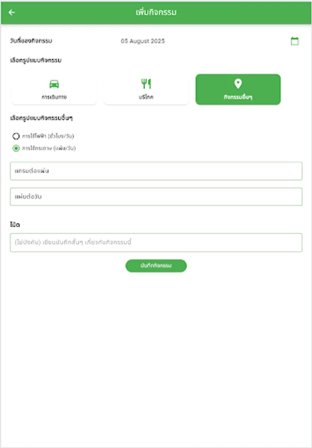 Social Purpose: The data you record in the app will be used for research by the Faculty of Science, Prince of Songkla University, to study and develop methods to reduce carbon dioxide emissions. Your information will be kept confidential and will not be used for marketing purposes.