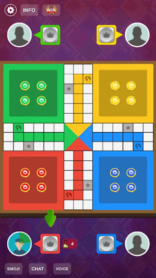 View the names and details of the opponents in your game (throw the dice, location of the four pieces, game board