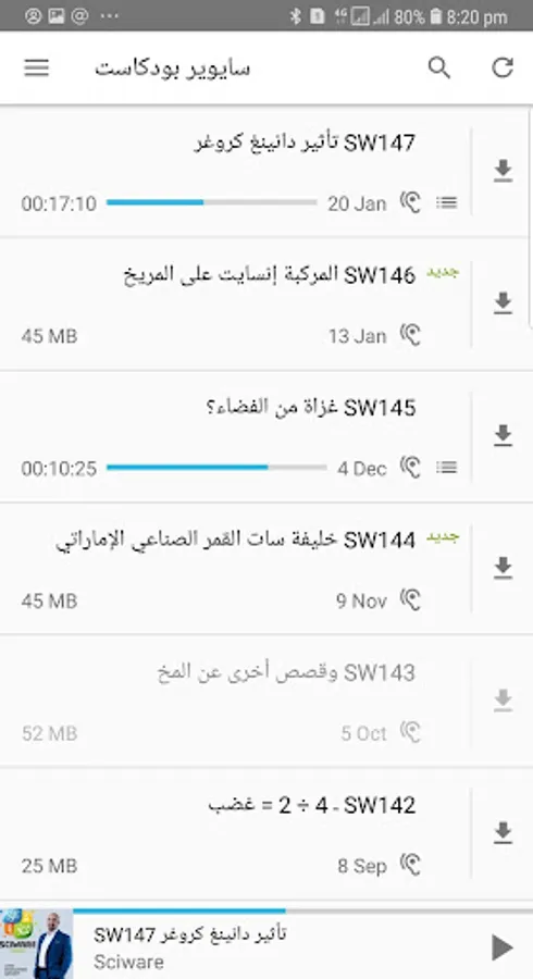 The Sciware podcast is a science program that delivers science in Arabic. It is produced and presented by Dr. Mohamed Qasem.