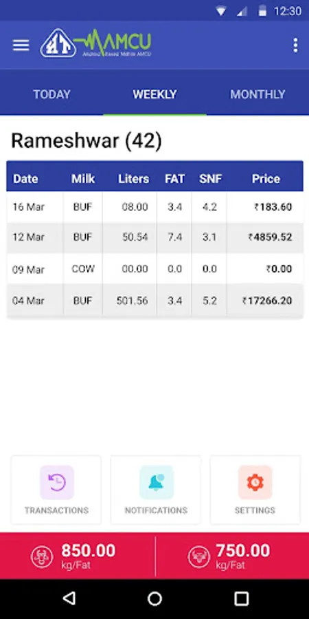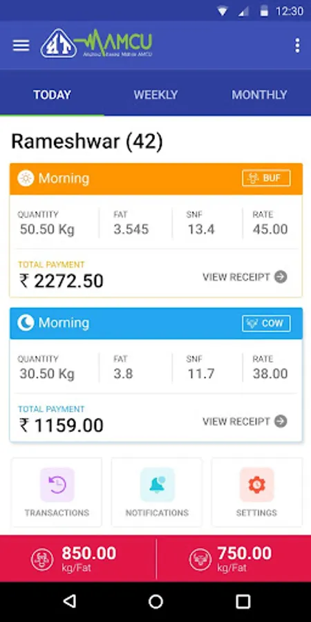 In Mobile AMCU Milk Farmer App , user can check their daily milk data on a single tap.