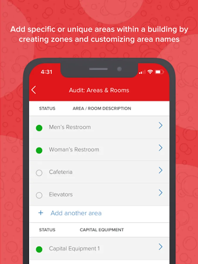 The faciliscan™ mobile application is a comprehensive workflow and cleanliness rating system that simplifies quality assurance audits, manages performance, and helps you build workload estimates.
