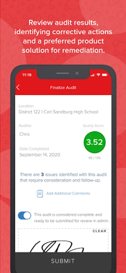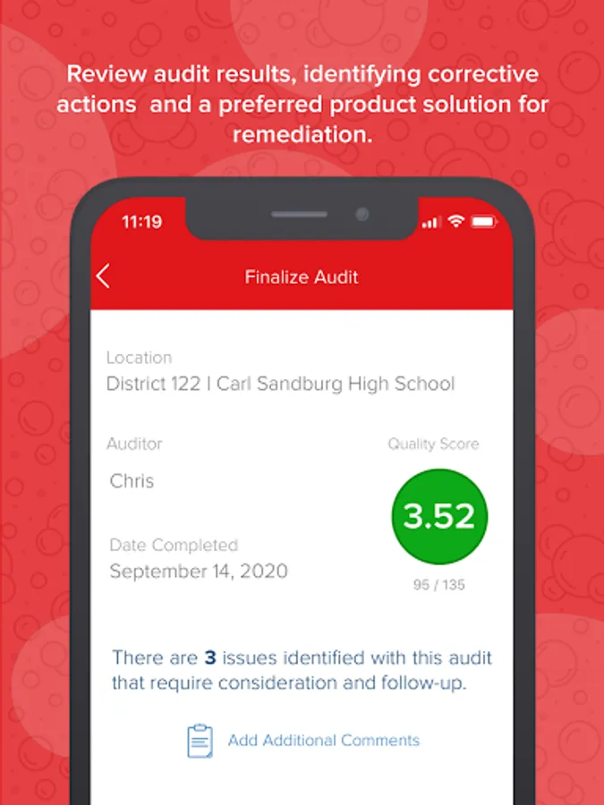 Auditors using faciliscan™ can identify corrective action items for poorly rated items in real time and choose an appropriate SC Johnson Professional® product recommendation to improve