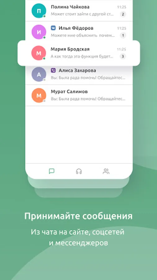 Receive messages from sites, social networks and messengers in one application, do not miss a single request and respond faster than your competitors.