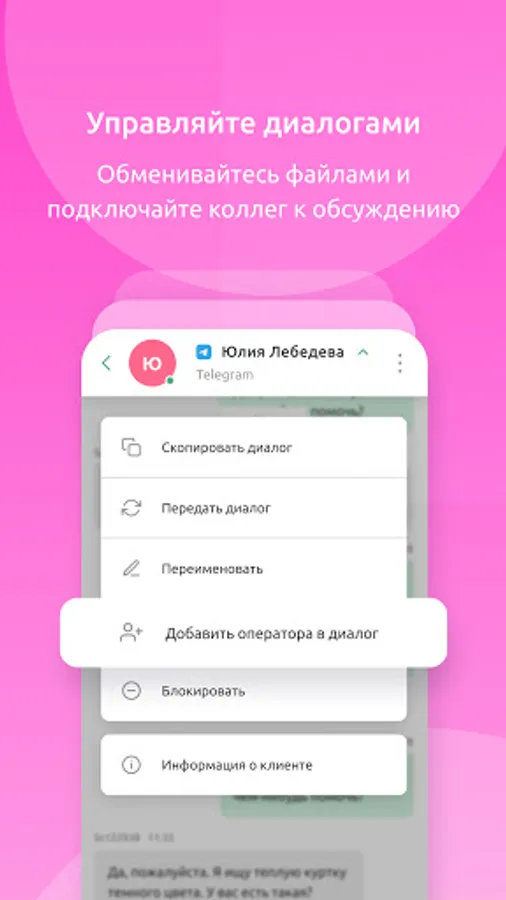 - Translate dialogs to other operators or connect colleagues to the conversation