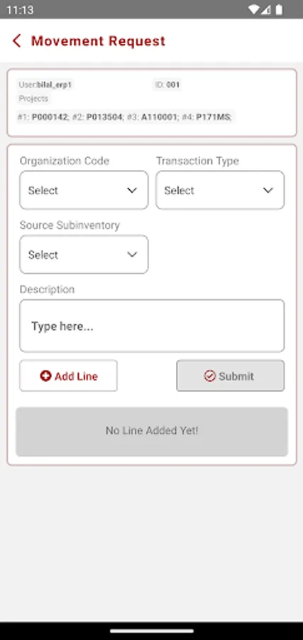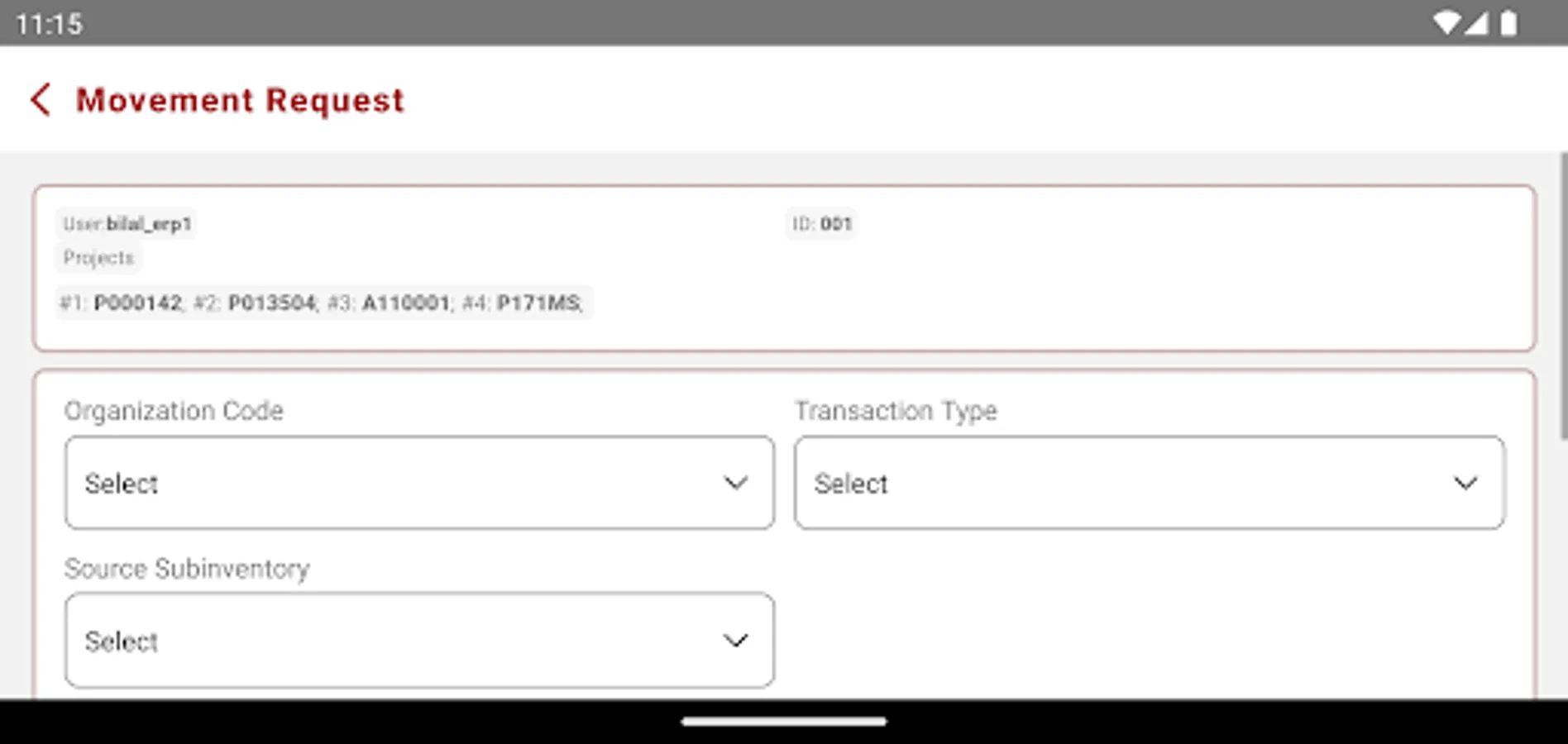A mobile application to submit Movement Request Oracle Fusion Inventory through mobile phones