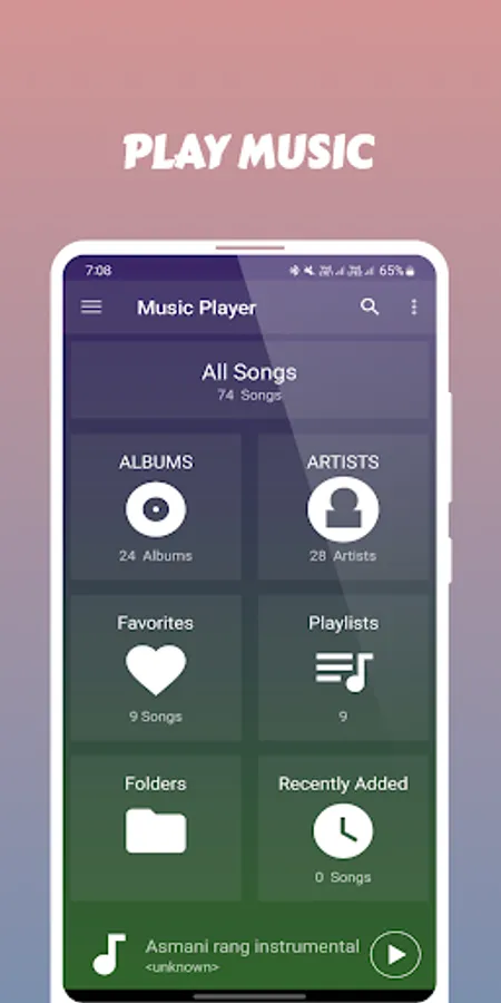 Play your songs with all new music player.