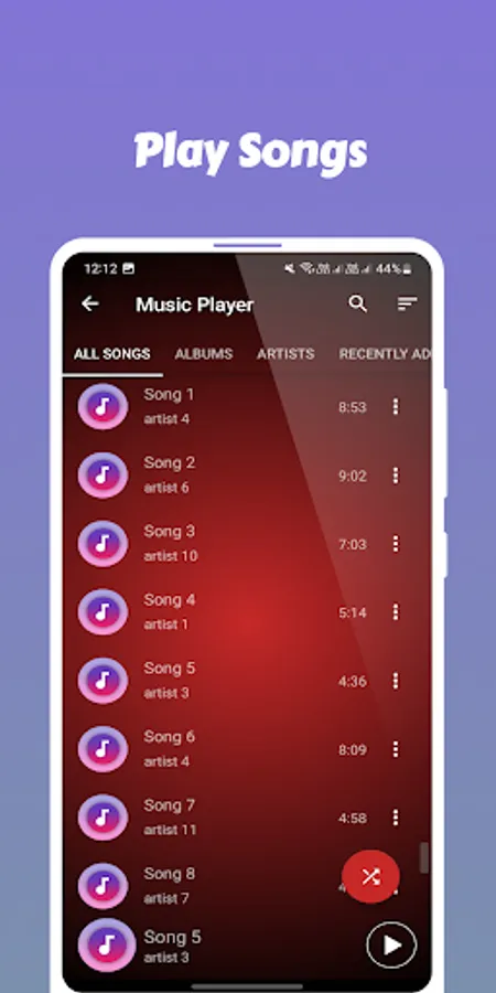 ♪ Use shuffle button to shuffle the songs.