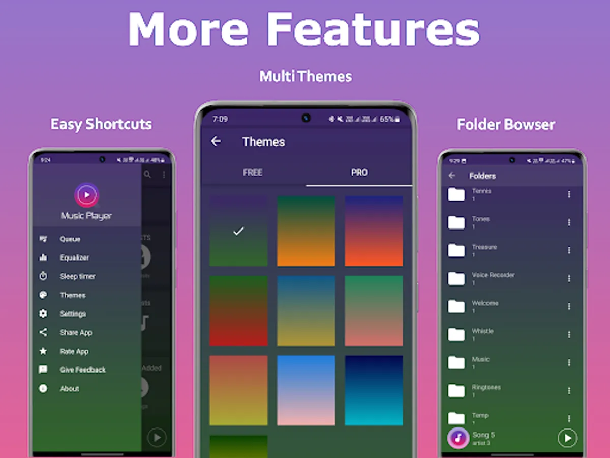 Use equalizer to customize your sound, create playlist, set sleep timer and play music with album, artist and all songs options. Support almost all audio formats.