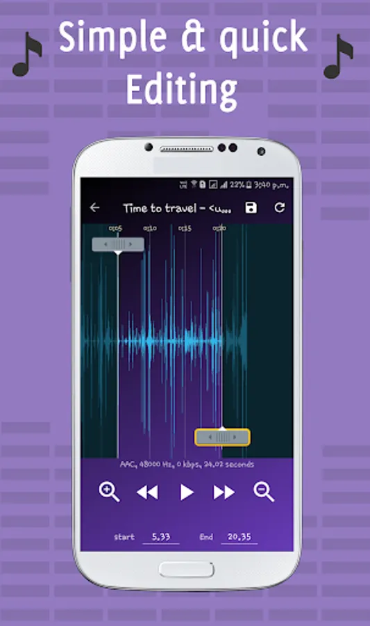 ♪ simple touch adjust to set starting and ending point to make ringtone.