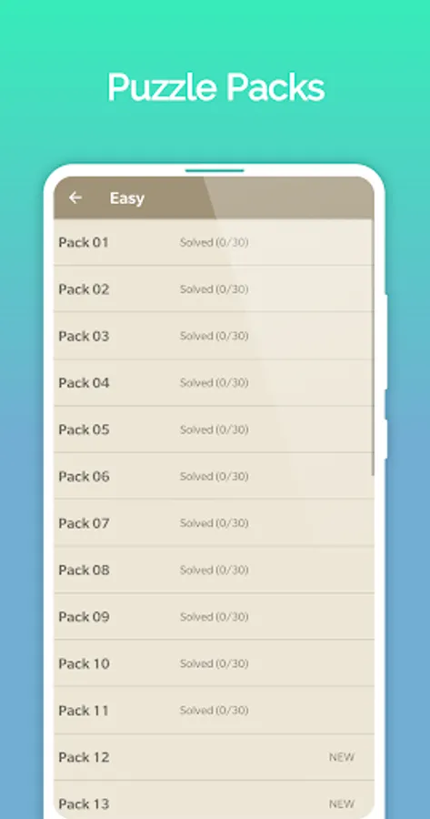 Each difficulty contains several puzzle packs and each pack contains 30 puzzles now. Total 3600+ brain Sudoku puzzles.