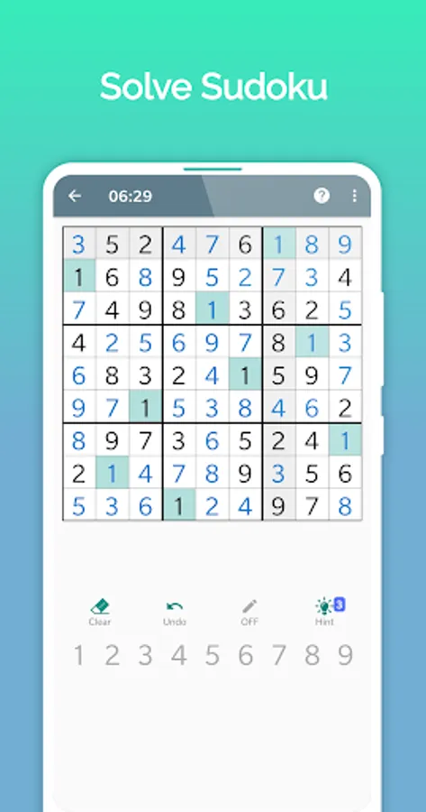 Choose your favorite input mode: Number first or cell first to play easy sudoku.